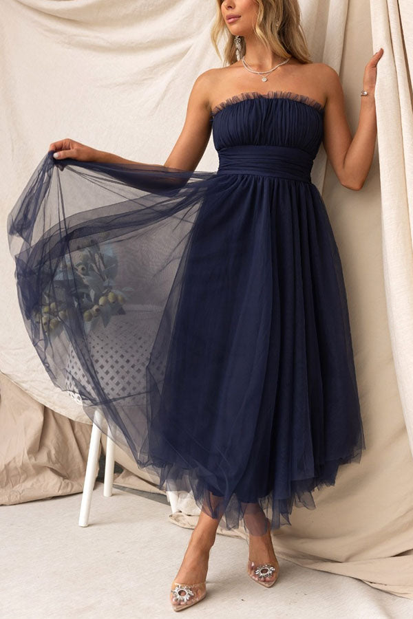 Moonlight Glow Tulle Off Shoulder Ruched Maxi Dress