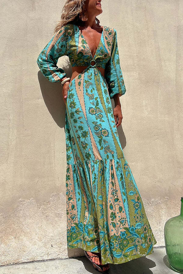Surprised By You Printed Side Cutout Elastic Waist Maxi Dress
