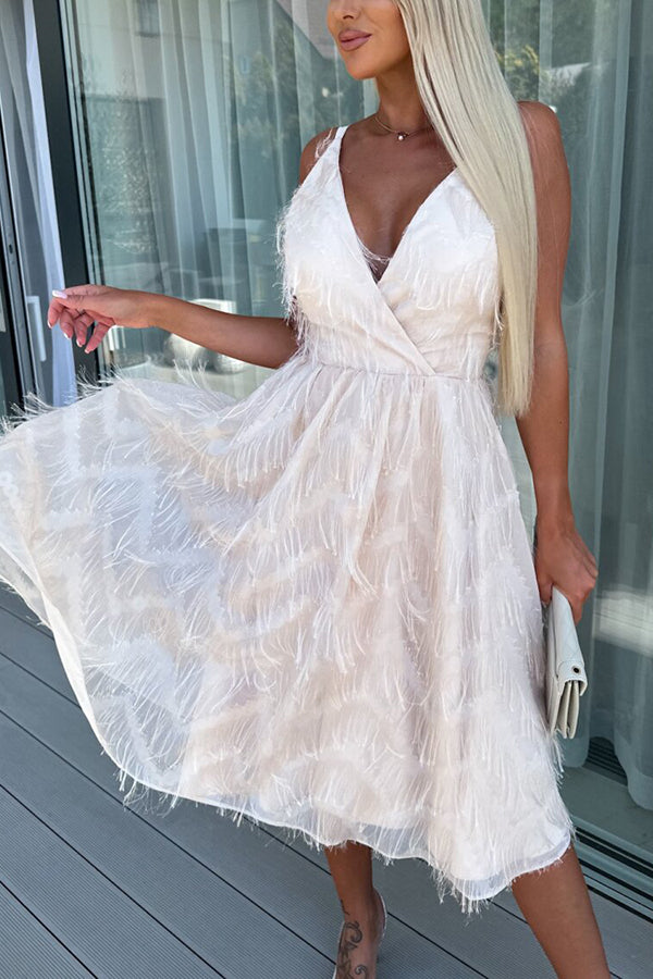 Dancing Melody Feather Tassel Fabric Wrap Midi Dress