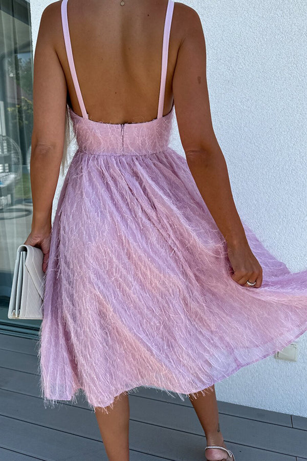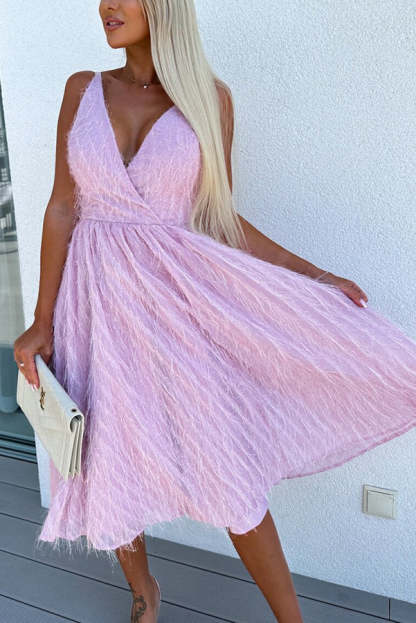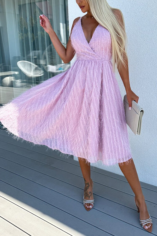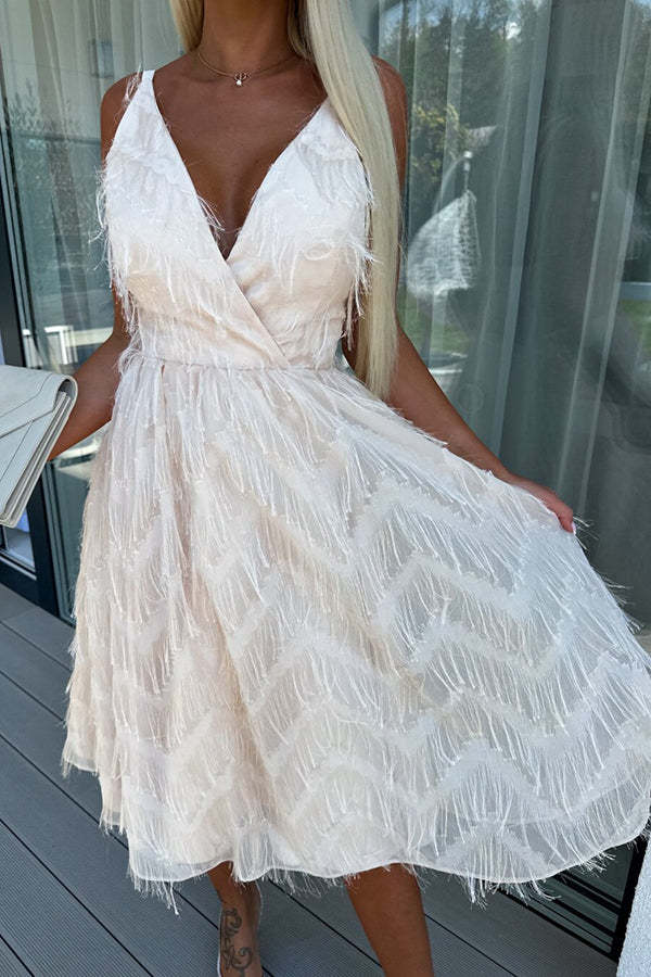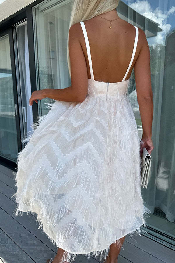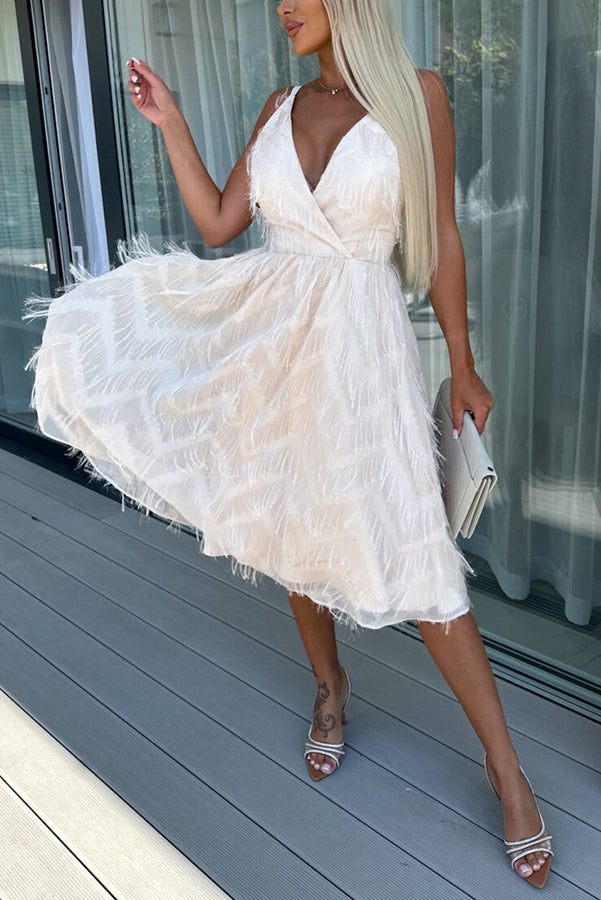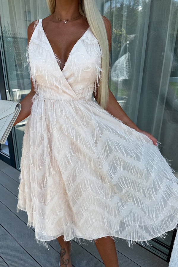 Dancing Melody Feather Tassel Fabric Wrap Midi Dress