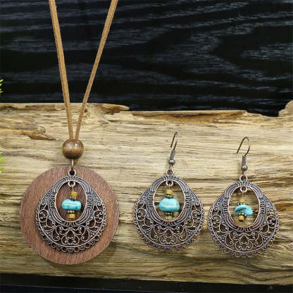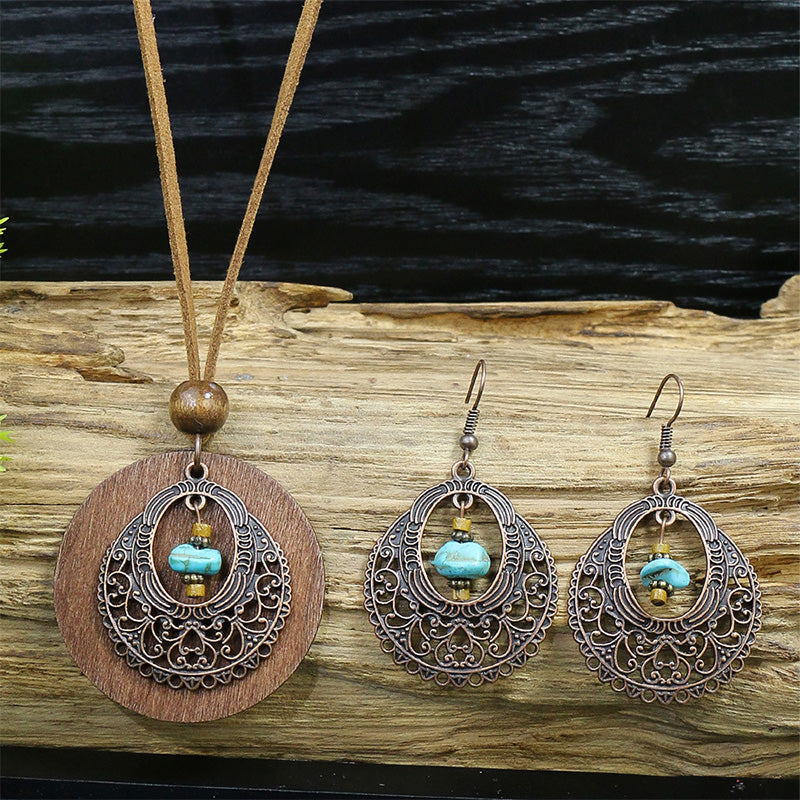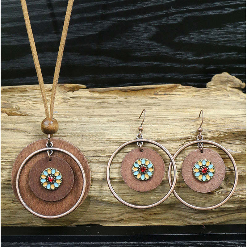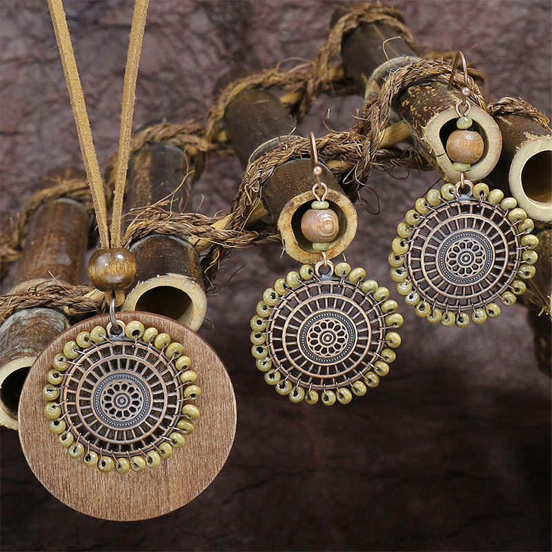 Ethnic Vintage Alloy Wood Pendant Pendant Geometric Earring Set