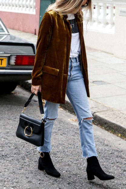 Eye Catching Street Style Velvet Blazer