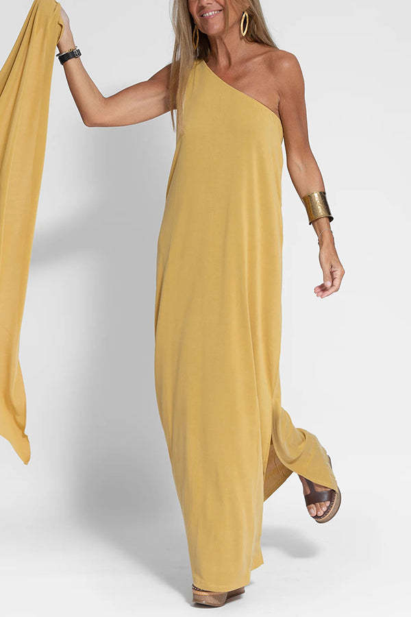 Flawless and Free One Shoulder Relaxed Slit Maxi Dress