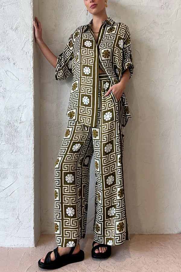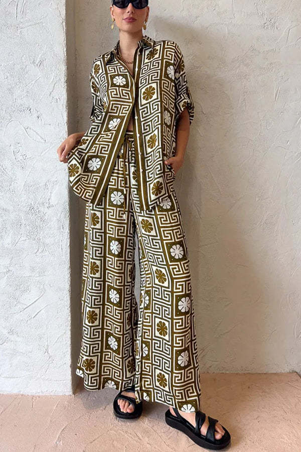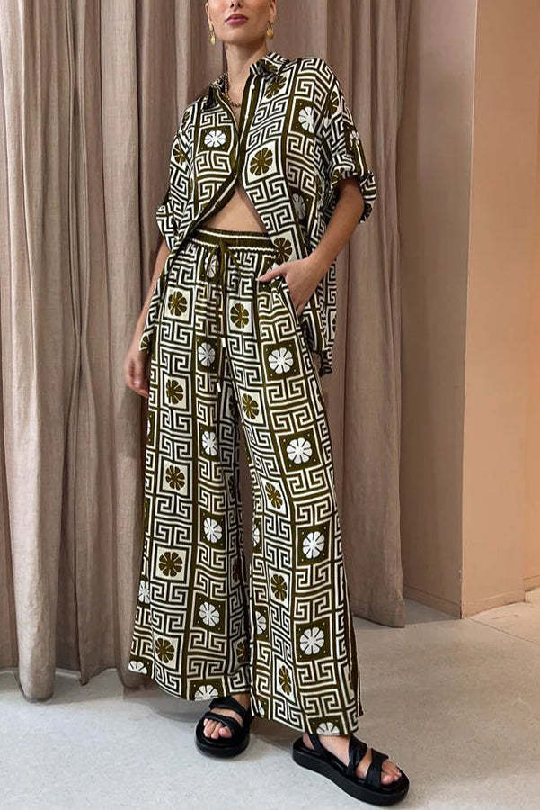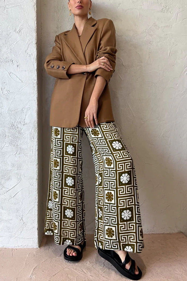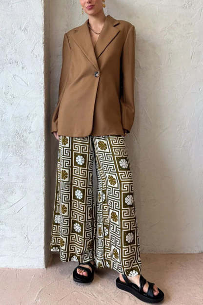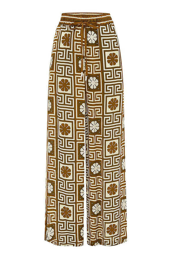 I Belong Here Linen Blend Vintage Print Elastic Waist Pocketed Wide Leg Pants