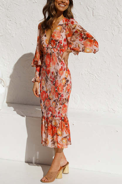 Latisha Floral Smocked Waist Midi Dress