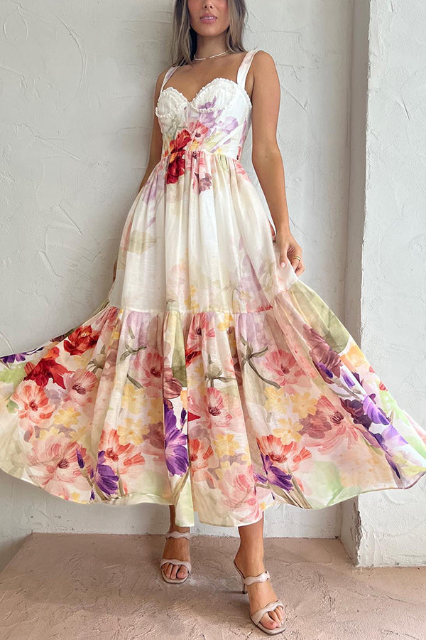 Romantic Date Floral Ruffle Detail Pocketed Corset Maxi Formal / Vacation Dress