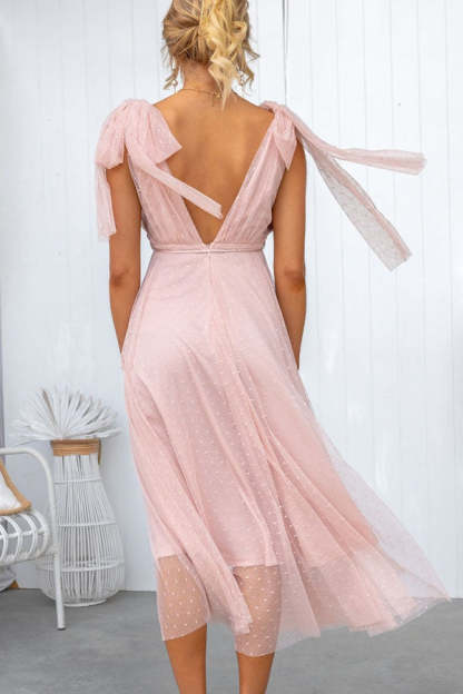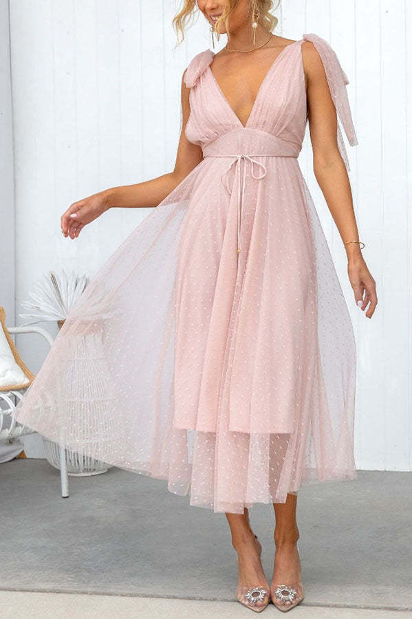 Summer Cinderella Tulle Polka Dots Tie Straps Midi Dress